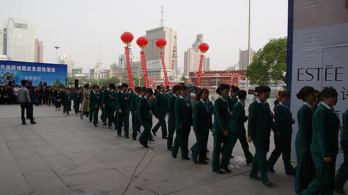 員工疏散完畢后,以整齊的隊列在東方紅廣場集合列隊,展示了良好的精神風貌
