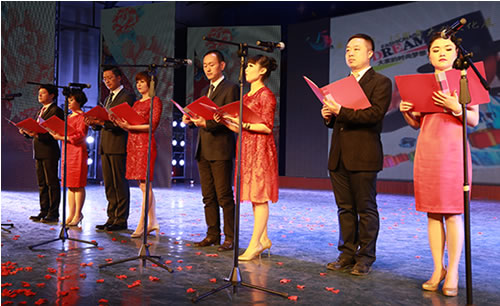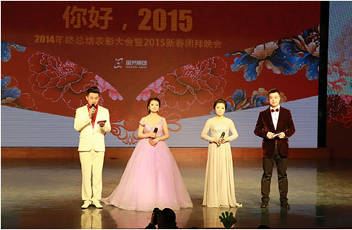2015年2月9日晚,在蘭州37中(蘭州女子專業中等專科學校)5樓藝術廳內,國芳集團“你好,2015”2014年終總結表彰大會暨2015年新年盛典溫馨開演。恰逢國芳集團成立十五周年,晚會現場充滿了溫馨、喜慶和感動。晚會延用了去年的大型LED顯示屏、多組VCR、微信平臺等廣受好評的元素,并創新的融入了中華名族傳統的禮儀文化,漢唐古典舞的壯觀優美,員工孩子們《弟子規》的可愛表演,都在為晚會添加了精彩度的同時,將傳承禮儀所需要的高尚美德這一思想深入的傳達到每一位員工的心中。員工們精心準備的節目一個比一個精彩,極具藝術表現力和觀賞性,董事長也被熱烈的氣氛所感染,親自上臺演唱了兩首歌曲,把晚會推向了高潮。最后,國芳集團年終晚會在祥和熱烈的氣氛中落下了帷幕。讓我們共同期待來年的精彩!