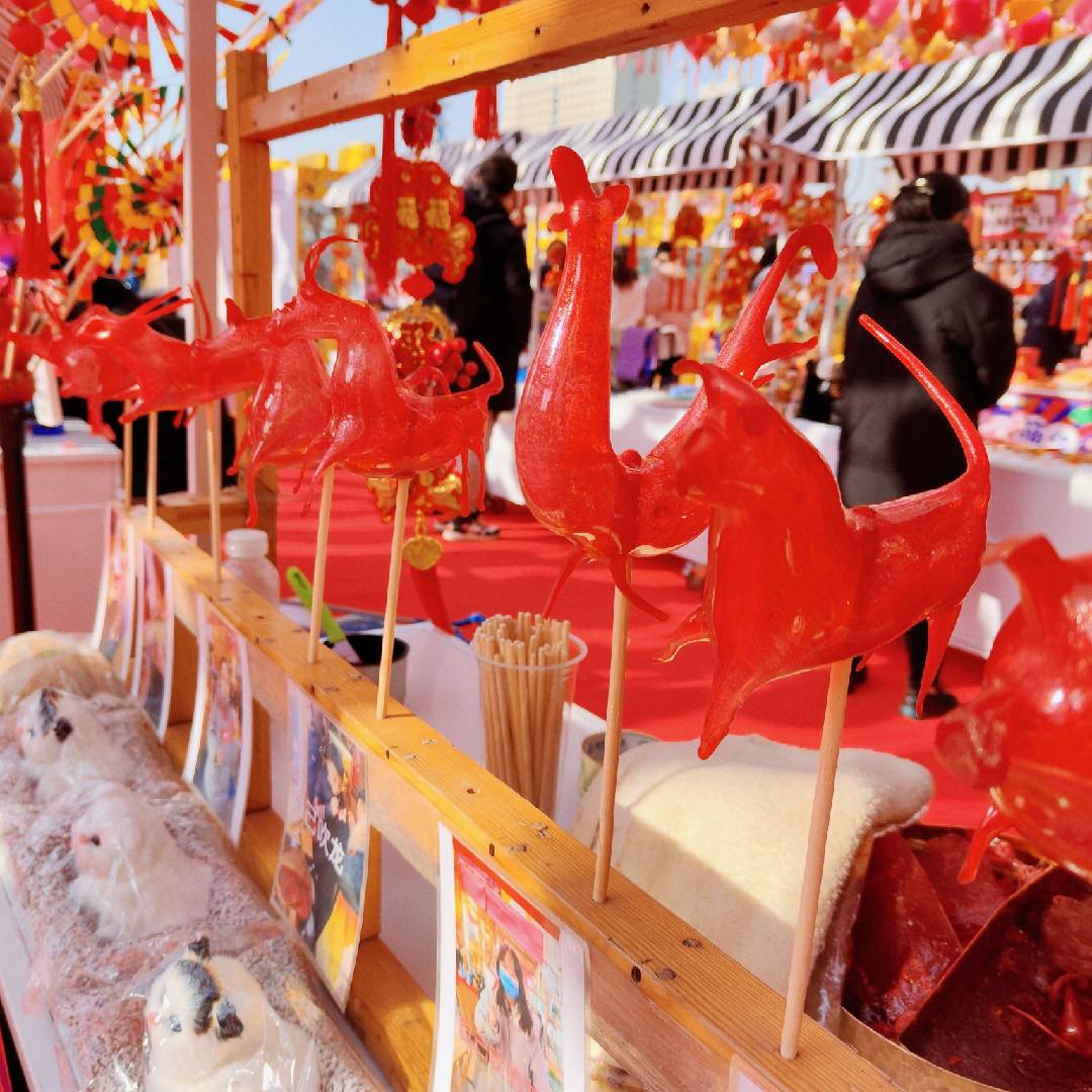 今天的喜慶,綿延著千百年傳統(tǒng)文化積淀的醇厚,綻放著文化創(chuàng)意與時俱進的鮮活,活動現(xiàn)場遍布著中華傳統(tǒng)文化的元素。手寫春聯(lián),翰墨飄香;巧手剪紙,剪藝傳情;草編藝術,指尖乾坤;嘴吹糖人,栩栩如生;塑捏彩泥,惟妙惟肖;手繪糖畫,活靈活現(xiàn)。