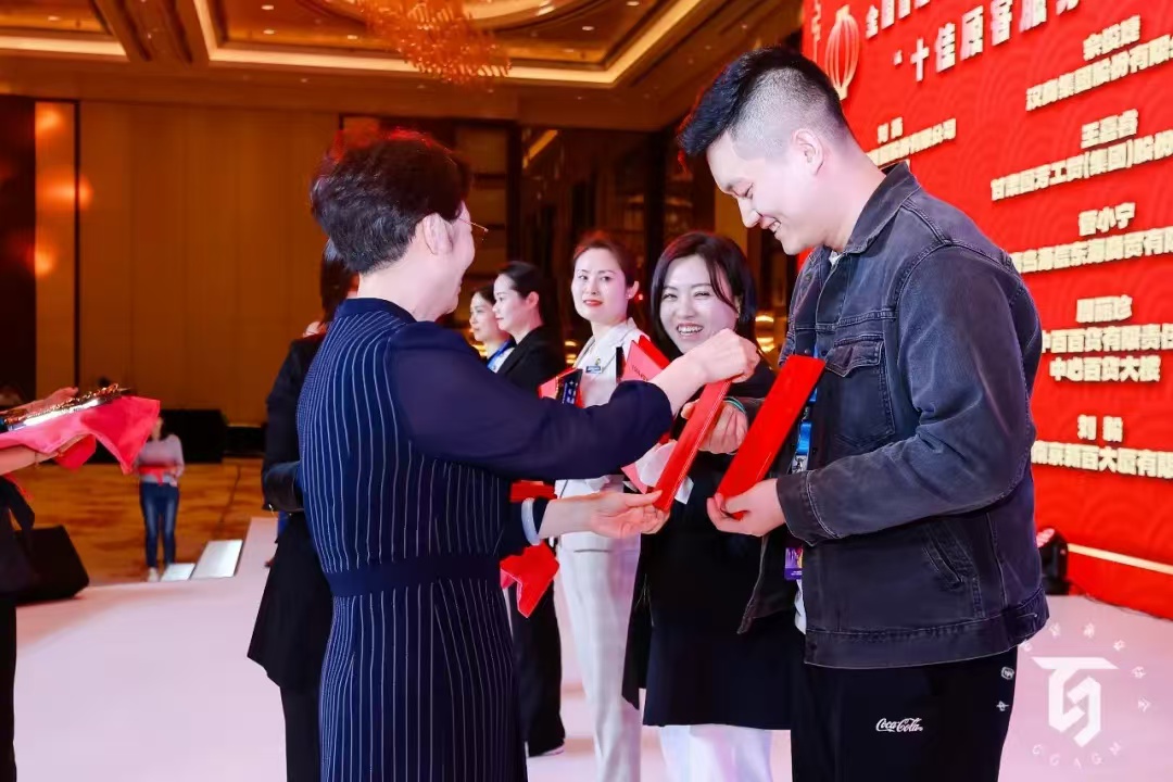 王嘉瑞作為國芳集團代表進入技能大賽活動決賽,通過現場操作和演示介紹,充分展示出獨特且具有優勢的業務技能和服務風采,最終榮獲“全國十佳導購”榮譽。